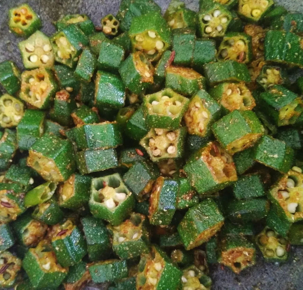 - Cover and cook for 8-9 minutes or until the okra is cooked.