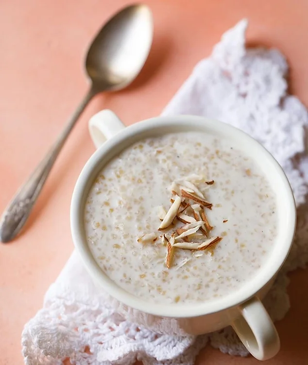 8. Your sweet Dalia is ready! Sprinkle some Nut Powder on top and serve warm.